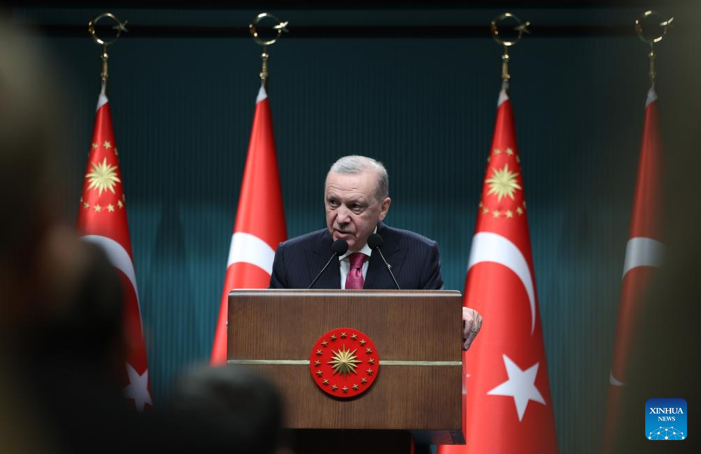 El presidente turco, Recep Tayyip Erdogan, habla en una conferencia de prensa después de una reunión de gabinete, en Ankara, Turquía, el 9 de marzo de 2026. Erdogan indicó el lunes que Turquía mantendrá un alto nivel de vigilancia ante la escalada de las tensiones regionales, y advirtió que "medidas provocadoras" podrían tensar las relaciones de Ankara con Teherán. (Xinhua/Mustafa Kaya)