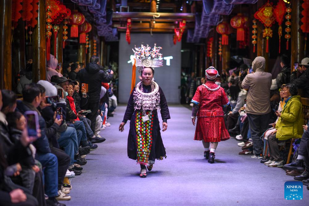 Desfile de moda «Village T» celebrado en Guizhou, suroeste de China