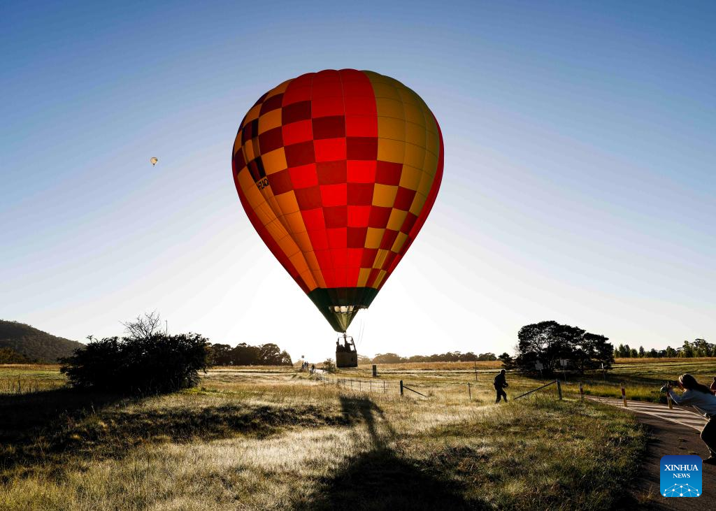 Un globo aerostático despega durante el Espectáculo de Globos Aerostáticos de Canberra, en Canberra, Australia, el 14 de marzo de 2026. El festival anual de globos aerostáticos comenzó aquí el sábado y durará hasta el 22 de marzo. (Xinhua/Chu Chen)