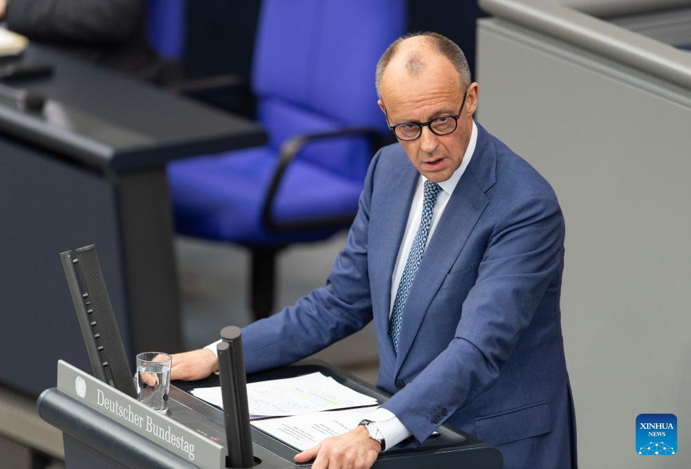 El canciller de Alemania, Friedrich Merz, pronuncia un discurso en el Bundestag, la Cámara Baja del Parlamento alemán, en Berlín, Alemania, el 18 de marzo de 2026. Merz pidió el miércoles esfuerzos para lograr pronto el fin de la guerra contra Irán a través de medios diplomáticos, y advirtió que el actual conflicto daña a todas las partes, incluyendo a Estados Unidos. (Xinhua/Zhang Haofu)