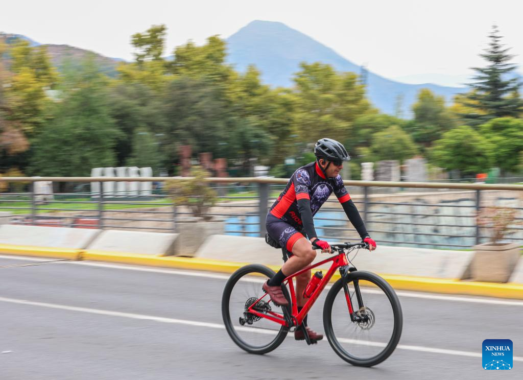 Imagen del 22 de marzo de 2026 de un hombre participando en el evento "Domingo sin automóviles", en Santiago, capital de Chile. Durante el evento, algunas calles de la capital chilena se convirtieron en zonas libres de automóviles desde las 9:00 hasta las 14:00, hora local, con vehículos motorizados prohibidos. (Xinhua/Zhou Jiayi)