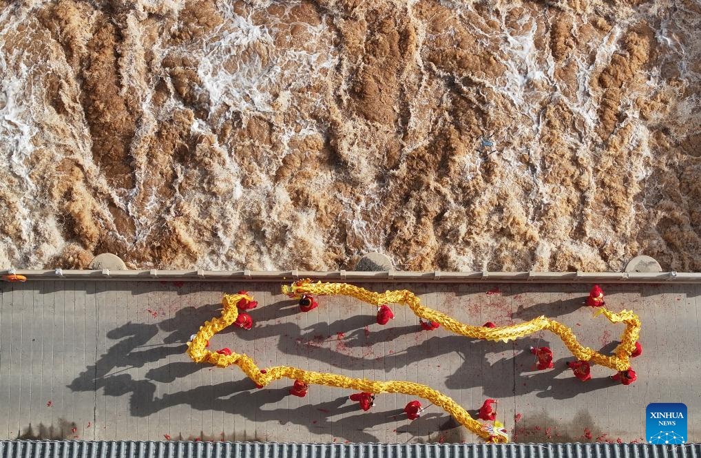 Vista aérea tomada con un dron el 24 de marzo de 2026 de una compuerta de esclusa abierta que desvía agua del río Amarillo para el riego, en Qingtongxia, en la región autónoma de la etnia hui de Ningxia, en el noroeste de China. (Xinhua/Wang Peng)