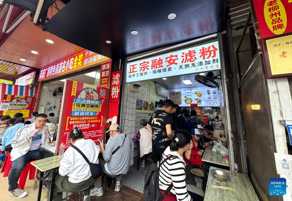 Unos comensales disfrutan de unos lyufen en un restaurante de la ciudad de Liuzhou, en la región autónoma de la etnia zhuang de Guangxi, al sur de China, el 14 de marzo de 2026. (Foto de Zheng Changhao/Xinhua).