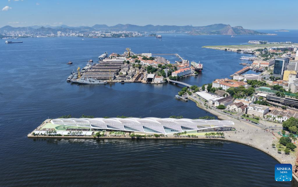 Vista aérea tomada con un dron el 24 de marzo de 2026 del Museo del Mañana (frente) e Ilha das Cobras, en Río de Janeiro, Brasil. Río de Janeiro es la segunda ciudad más grande de Brasil. (Xinhua/Jin Haoyuan)