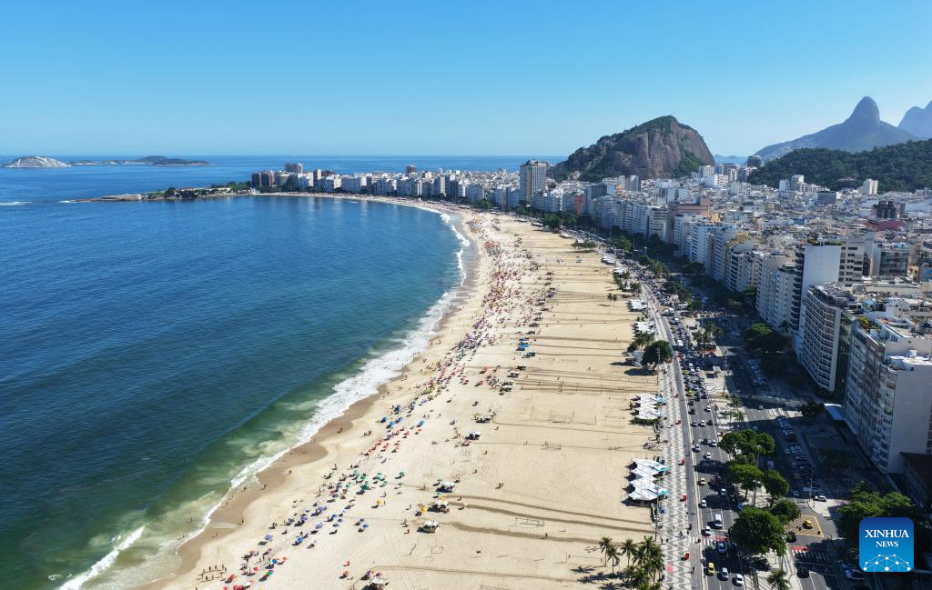Vista aérea tomada con un dron el 27 de marzo de 2026 de una vista de la playa de Copacabana, en Río de Janeiro, Brasil. Río de Janeiro es la segunda ciudad más grande de Brasil. (Xinhua/Jin Haoyuan)
