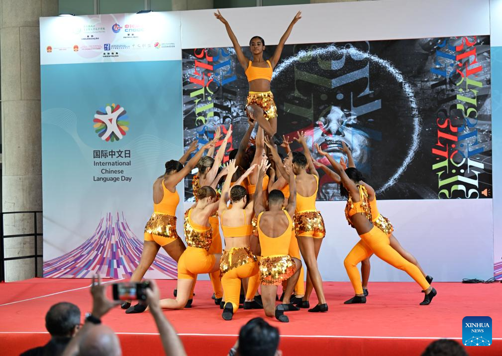 Artistas brasileños bailan durante un acto conmemorativo del Día Internacional de la Lengua China en Río de Janeiro, Brasil, el 15 de abril de 2026. (Xinhua/Jin Haoyuan).