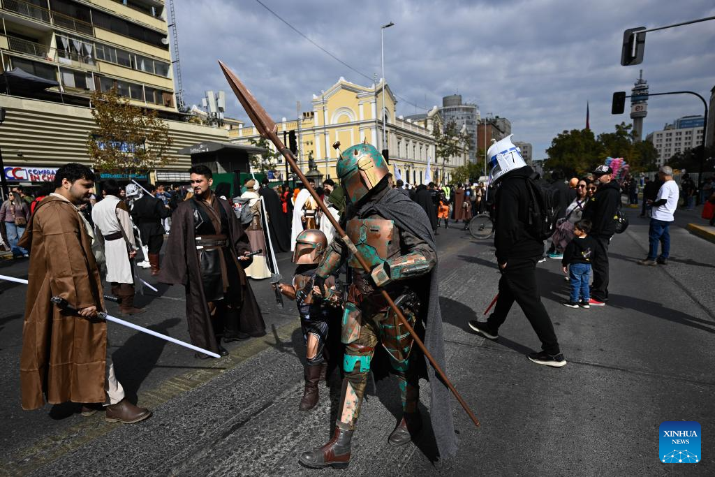 Fanáticos de la saga de Star Wars participan en el Desfile de las Galaxias 2026, en Santiago, capital de Chile, el 18 de abril de 2026. (Xinhua/Jorge Villegas)