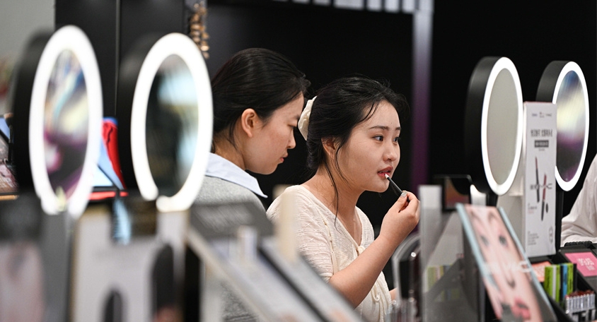 Clientes compran en una tienda libre de impuestos en Haikou, provincia de Hainan, en el sur de China, el 25 de abril de 2026. (Xinhua/Pu Xiaoxu)