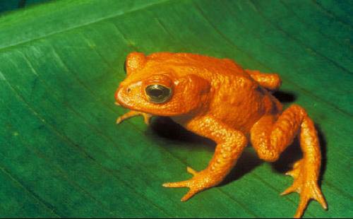 Es un tipo de sapos de América. Todo el cuerpo del macho es de color dorado, de ahí su nombre de sapo dorado. Antes, una gran cantidad de ejemplares de sapo dorado vivía en una selva pequeña del Bosque Nuboso Monteverde de Costa Rica, pero, desde 1989, no se ha vuelto a ver más ejemplares de esta especie en dicho país.