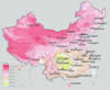 La mayor parte de China se encuentra al norte del trópico de Cáncer, lo cual determina que en invierno el ángulo de incidencia del sol sea pequeño y el tiempo de irradiación corto, con poco calor solar, que disminuye aún más mientras pasa más al norte. En verano el punto de irradiación directa está en el hemisferio norte, por lo cual la zona recibe en general más calor solar y la irradiación diaria es larga. |