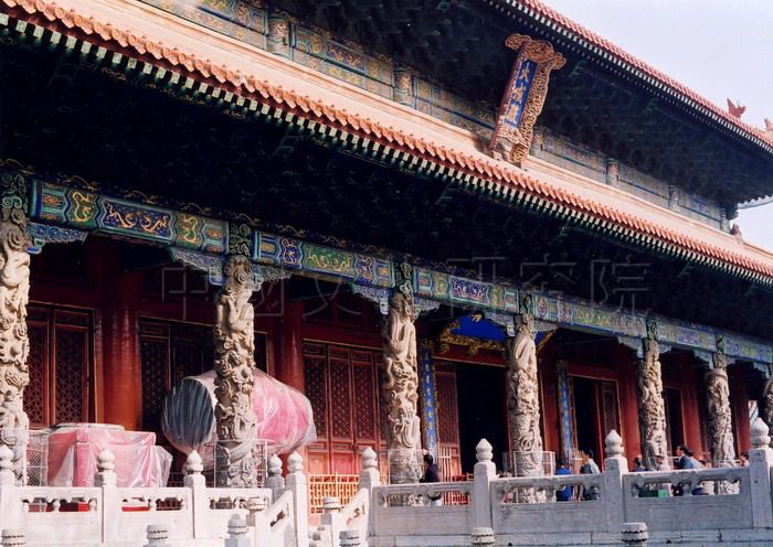 El Pabellón Dacheng es el centro del templo y contaba con 5 salas durante la dinastía Tang. Más tarde, en la dinastía Song, lo ampliaron hasta 7 salas. Fue reconstruido durante la dinastía Qing. Tiene una altura de 24,8 metros, un largo de 45,69 metros y una profundidad de 24,85 metros. Con una base de 2,1 metros, es la construcción más alta en todo el templo y al mismo tiempo, uno de los tres pabellones más antiguos en toda China.