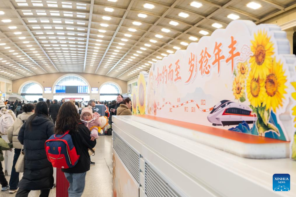 Pasajeros esperando para facturar en la estación de tren de Hankou, en Wuhan, provincia de Hubei, en el centro de China, el 2 de febrero de 2026. (Xinhua/Xiao Yijiu).