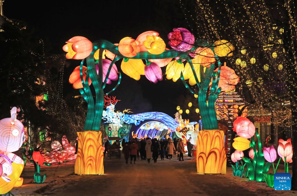 Visitantes en un espectáculo de faroles en Shenyang, provincia de Liaoning, noreste de China, el 31 de diciembre de 2022.