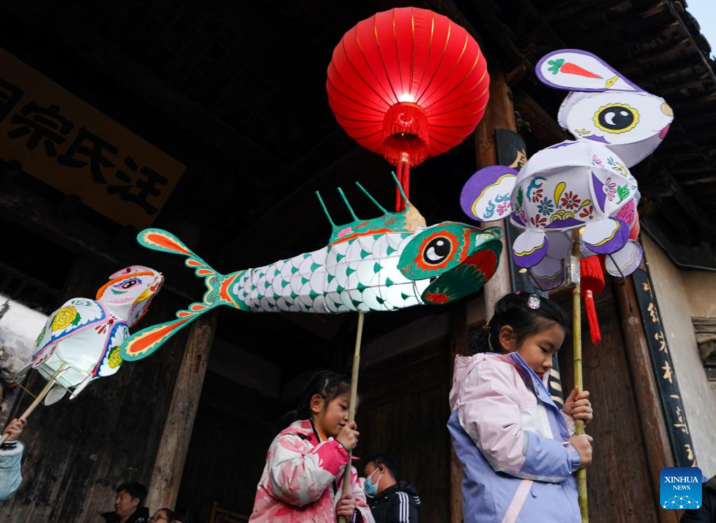 Turistas participan en desfile de coloridos faroles en Anhui