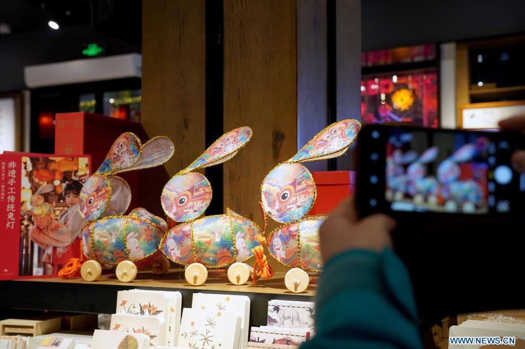 Imagen del 3 de febrero de 2023 de linternas en forma de conejos en una tienda del Jardín Yuyuan, en Shanghai, en el este de China. El Festival de las Linternas, el día 15 del primer mes del calendario lunar chino, cae el 5 de febrero este año. Diversas actividades se celebraron en el Jardín Yuyuan para dar la bienvenida al próximo festival.