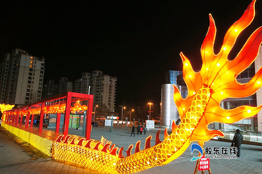 : Linterna gigante con forma de dragón adorna la plaza de Yantai, Shandong