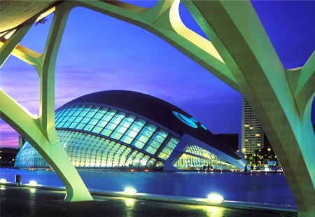 La Ciudad de las Artes y las Ciencias, situada en Valencia, España, está compuesta por el Museo de las Ciencias, una Ópera, una Sala de Proyecciones de Cine, un palacio de congresos y exposiciones y un Oceanográfico. Fue diseñada por Santiago Calatrava y Félix Candela y es un lugar que combina la cultura con la recreación.
