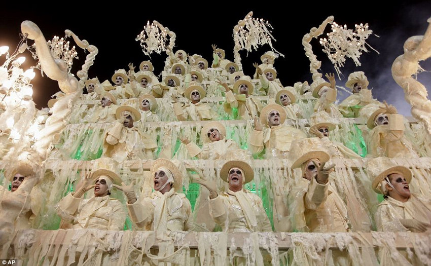 Sensuales y colorados desfile de carrozas durante la Carnaval 2013 de Río de Janeiro, Brasil