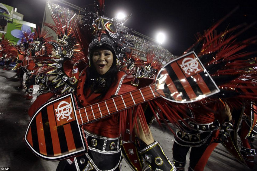 Sensuales y colorados desfile de carrozas durante la Carnaval 2013 de Río de Janeiro, Brasil