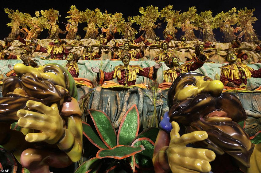 Sensuales y colorados desfile de carrozas durante la Carnaval 2013 de Río de Janeiro, Brasil