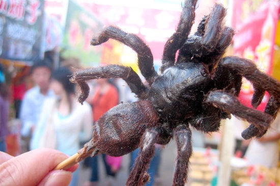 Hemos comido lengua, estómago, sangre e intestinos y en realidad todos sabían bastante bien... pero no me puedo hacer a la idea de comer enormes arañas y reptiles, jaja.