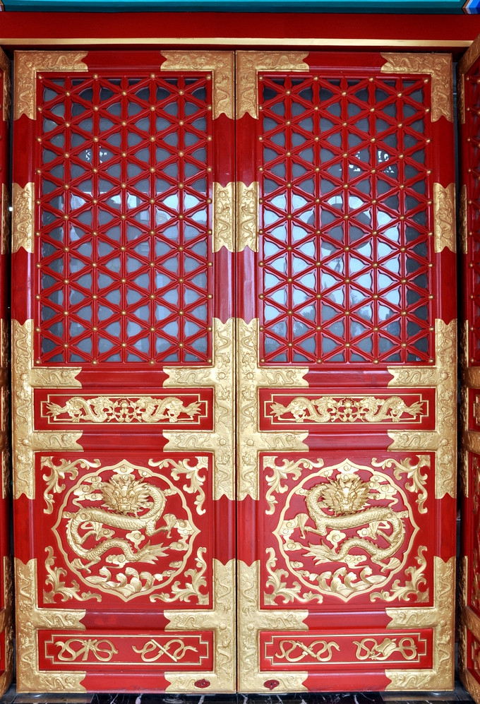 Las Puertas rojas imperiales son elementos recurrentes en los templos y palacios. El color no es exactamente rojo púrpura, sino una combinación entre rojo y naranja. Representa a la nobleza y la autoridad. La puerta roja imperial proyecta a las personas una imagen de solemnidad.