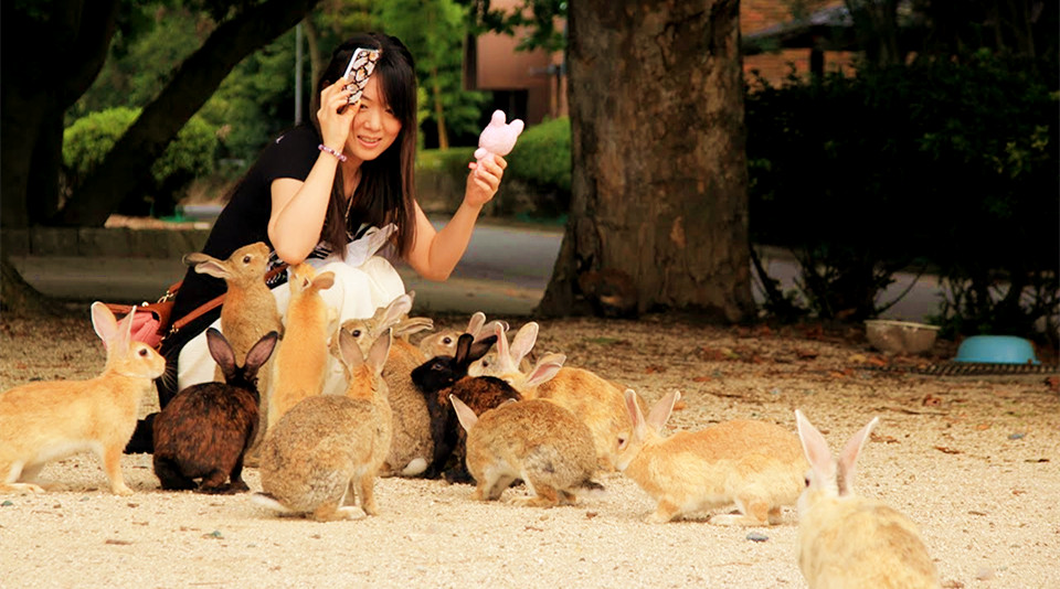 Okunoshima es una pequeña isla de Japón, situada en el Mar Interior de Seto, ciudad de Takehara, Prefectura de Hiroshima. Es accesible mediante transbordador desde Tadanoumi y Omishima. En la isla hay espacios para acampar, senderos para caminar y lugares de interés histórico. A menudo es llamada "Usaji Jima" (Isla Conejo) debido a los numerosos conejos silvestres que deambulan por la isla, los cuales son bastantes mansos y se acercan a los humanos.