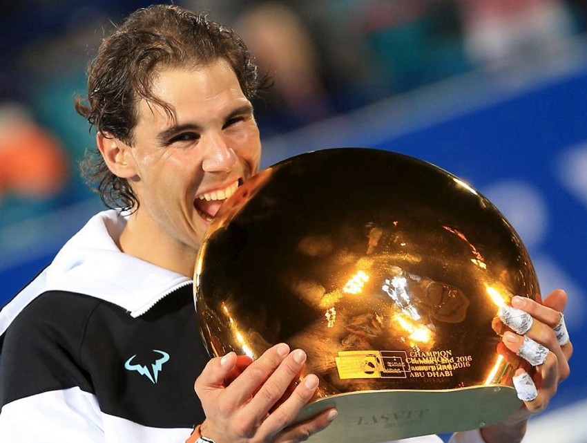 El tenista español Rafael Nadal comenzó el año con un triunfo en el torneo de Exhibición de Abu Dhabi, Emiratos Arabes Unidos, de pista dura, al derrotar en la final al canadiense Milos Raonic por 7-6 y 6-3.