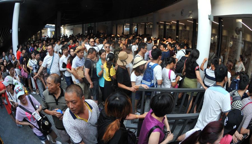 Turistas en largas colas para comprar las entradas en Zhangjiajie, provincia de Hunan, centro de China, 20 de agosto de 2016.