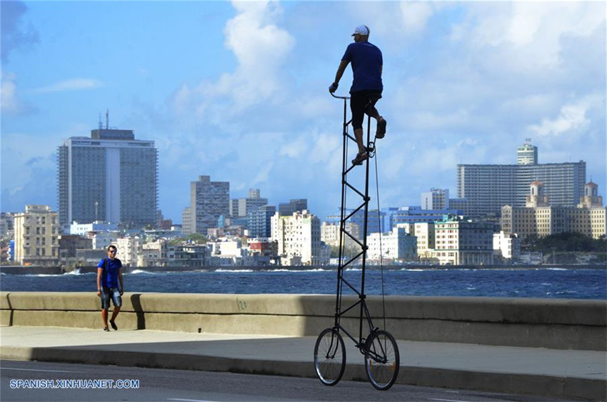 Un cubano recorre La Habana en una bicicleta "de altura"