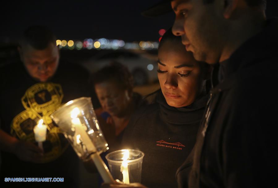 Imagen del 2 de octubre de 2017, de personas asistiendo a una vigilia con velas en recuerdo de las víctimas del tiroteo en Las Vegas, Estados Unidos. De acuerdo con información de la prensa local, al menos 58 personas murieron y 527 otras resultaron heridas luego de que un pistolero abriera fuego el 1 de octubre de 2017 durante un concierto en Las Vegas, el ataque a tiros más mortal en la historia moderna de Estados Unidos. Del tiroteo en Las Vegas al ataque con camión en Manhattan, del huracán Harvey en Texas a los incendios forestales en California, del avance de la bolsa de valores a un eclipse solar total en Estados Unidos, 17 fotografías cubrieron los momentos impresionantes de los estadounidenses en el año. Son rostros típicos de los estadounidenses, personificando el año de 2017 y reflejando la duplicidad de sus vidas.