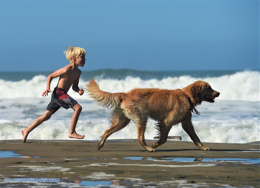 Imagen del 21 de octubre de 2017, de un niño jugando con su perro en una playa en San Francisco, Estados Unidos. Del tiroteo en Las Vegas al ataque con camión en Manhattan, del huracán Harvey en Texas a los incendios forestales en California, del avance de la bolsa de valores a un eclipse solar total en Estados Unidos, 17 fotografías cubrieron los momentos impresionantes de los estadounidenses en el año. Son rostros típicos de los estadounidenses, personificando el año de 2017 y reflejando la duplicidad de sus vidas.