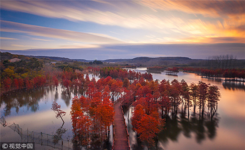 Paisaje de invierno en los humedales del lago Tianquan en Xuyi, provincia de Jiangsu, el 12 de noviembre de 2017.