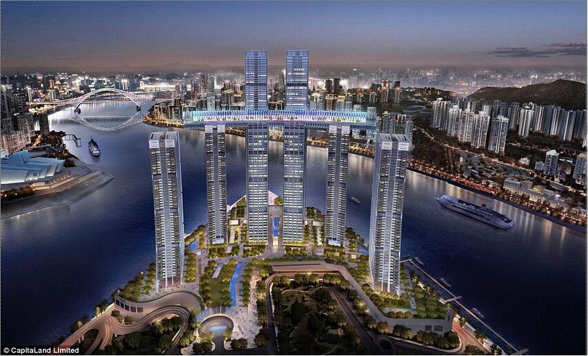 El gigantesco complejo, llamado Raffles City Chongqing, es una inversión de la companía inmobiliaria CapitaLand de Singapur que es propietaria de cadenas de centros comerciales y edificios de oficinas en toda China.
