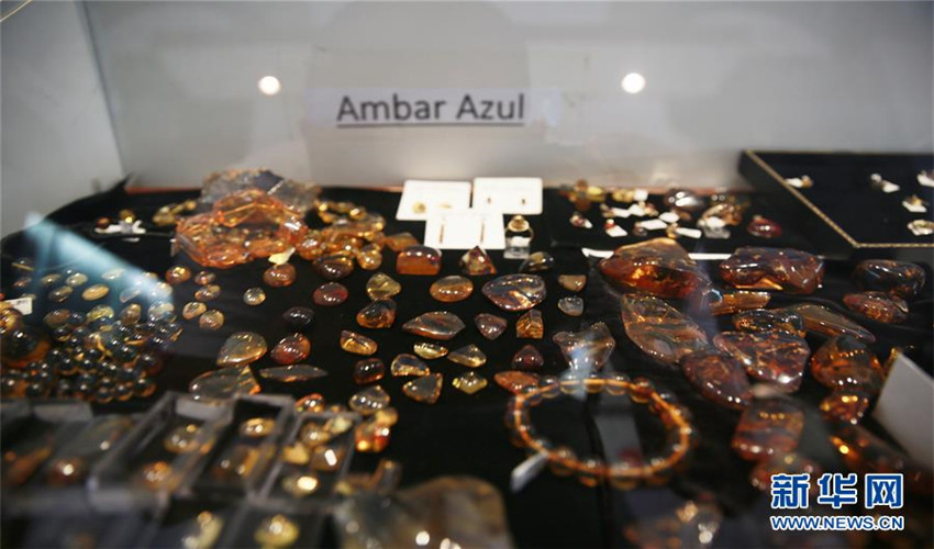 Ámbares tradicionales y ámbares azules en el museo en Santo Domingo, capital de República Dominicana, el 3 de mayo. República Dominicana es un país caribeño rico en ámbar y también es la principal zona productora de joyería del mundo, como ámbares azules. Los ámbares azules presentan un fantástico color azul y es una variedad de ámbar más preciosa. El país es además reconocido por su industria de la joyería como "el rey del ámbar". El Museo del Ámbar Dominicano, ubicado en la plaza de Columbus en el centro de Santo Domingo, donde se muestra una variedad de ámbares, también lleva a cabo exposiciones de la historia del ámbar.