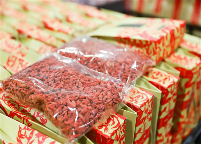 Gojis secos en exhibición en el Museo Chino del Goji en la región autónoma de Ningxia Hui.