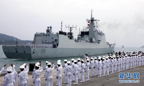 Un buque de guerra zarpa de Sanya, provincia de Hainan, para una misión de protección en el Golfo de Adén el 26 de diciembre de 2008. [Photo/Xinhua]