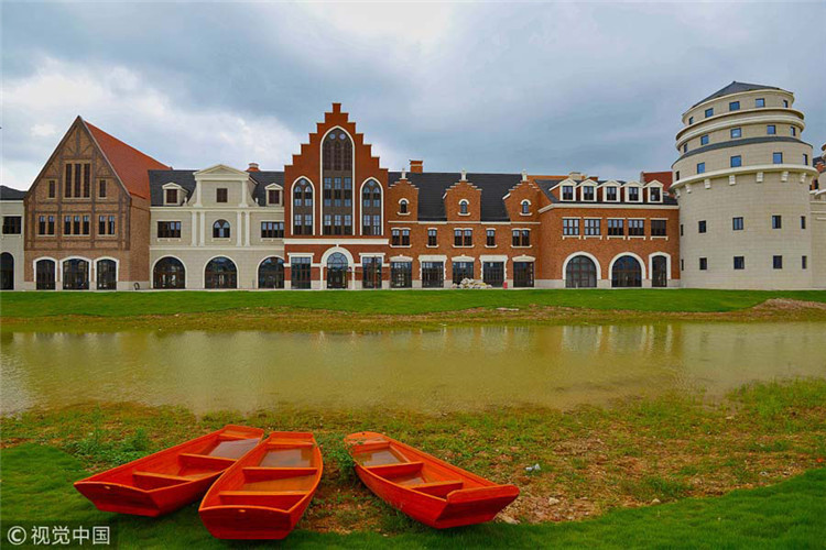 Una ciudad de temática europea situada cerca del lago de la luna de Nanning, región autónoma de Guangxi Zhuang del sur de China, el 6 de julio de 2014.