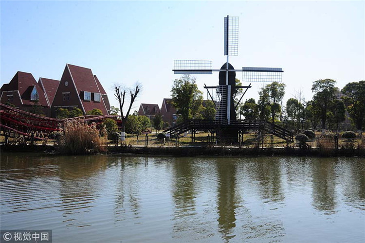 Un molino de viento en el condado de Holanda, con temática holandesa, en Suzhou, provincia de Zhejiang del este de China, el 21 de enero de 2014.