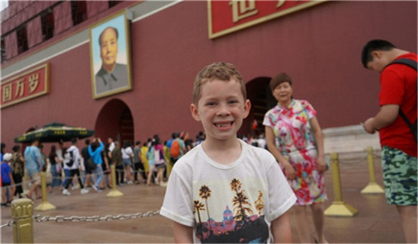 La primera parada para la joven celebridad de Internet de siete años fue el Museo del Palacio, también conocido como la Ciudad Prohibida, un punto de referencia histórico en Beijing. Durante su visita, Gavin posó para unas fotos vestido de pequeño emperador y posó con una sonrisa incómoda.