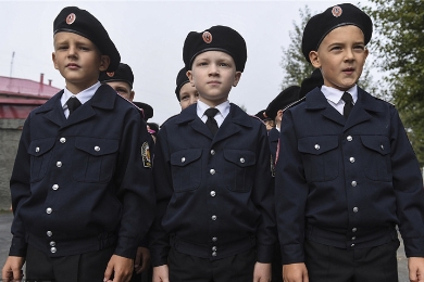 Niños de Ucrania del liceo de cadetes asisten a su primer día de escuela, marcando el tradicional inicio del año escolar en Kiev, Ucrania. 1 de septiembre de 2016.