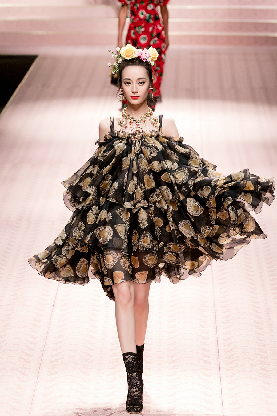 Actriz china Dilraba Dilmurat posa para desfile de moda