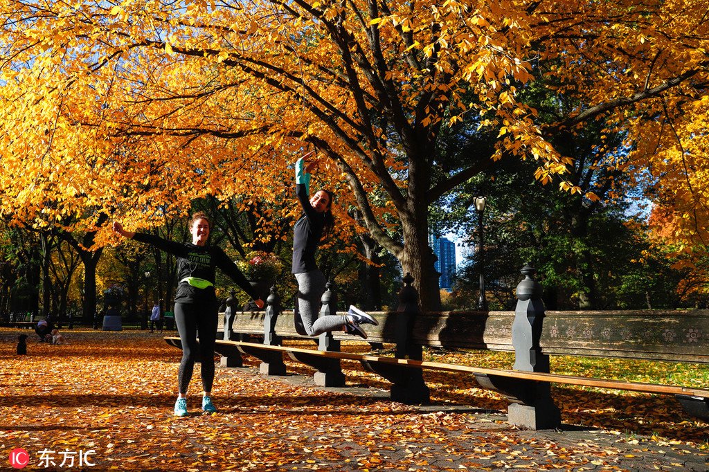 Hojas doradas abrillantan esta escena otoñal en Central Park, Nueva York, 8 de noviembre de 2018.