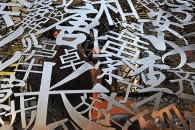 Una escultura de acero de los caracteres de más de 3000 apellidos chinos en Shenyang, provincia de Liaoning, en el noreste de China.