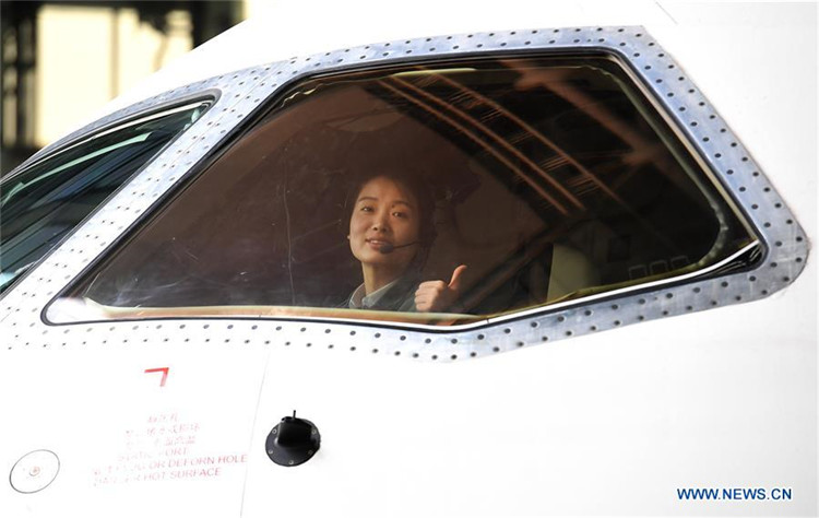 Jiang Dandan en la cabina de un avión de pruebas de vuelo en el distrito de Yanliang de Xi'an, capital de la provincia de Shaanxi, noroeste de China, el 5 de marzo de 2019. Jiang Dandan, de 29 años, es una de las pilotos de prueba más jóvenes de China y la única piloto mujer de prueba para aeronaves de transporte comercial que se entrena actualmente en la Aviation Industry Corporation de China, Ltd. Jiang pasó por docenas de cursos profesionales y 750 horas de práctica de vuelo en seis años. A finales de 2017, se convirtió en piloto de pruebas y participó en los vuelos de prueba durante la investigación y el desarrollo de ARJ21-700, C919 y otros tipos de aeronaves.