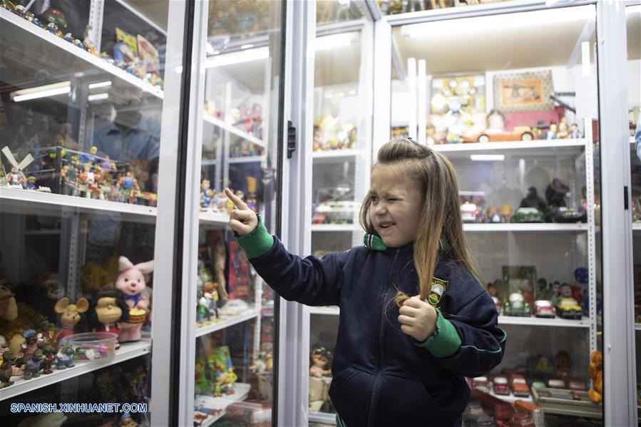 Vela, de 4 años, reacciona en el museo "SuperBatuque", en Buenos Aires, Argentina, el 15 de mayo de 2019. Un colorido museo con juguetes que tienen más de 60 años de historia se inauguró el miércoles en Buenos Aires, el cual permitirá a miles de argentinos recodar sus años de infancia cuando jugaban con estos objetos. El espacio, denominado "SuperBatuque" por su mentor, Demian Ventura, está ubicado en el barrio Parque Chacabuco, en el centro-sur de la capital argentina y reúne colecciones nacionales e importadas con las que crecieron los niños del país.