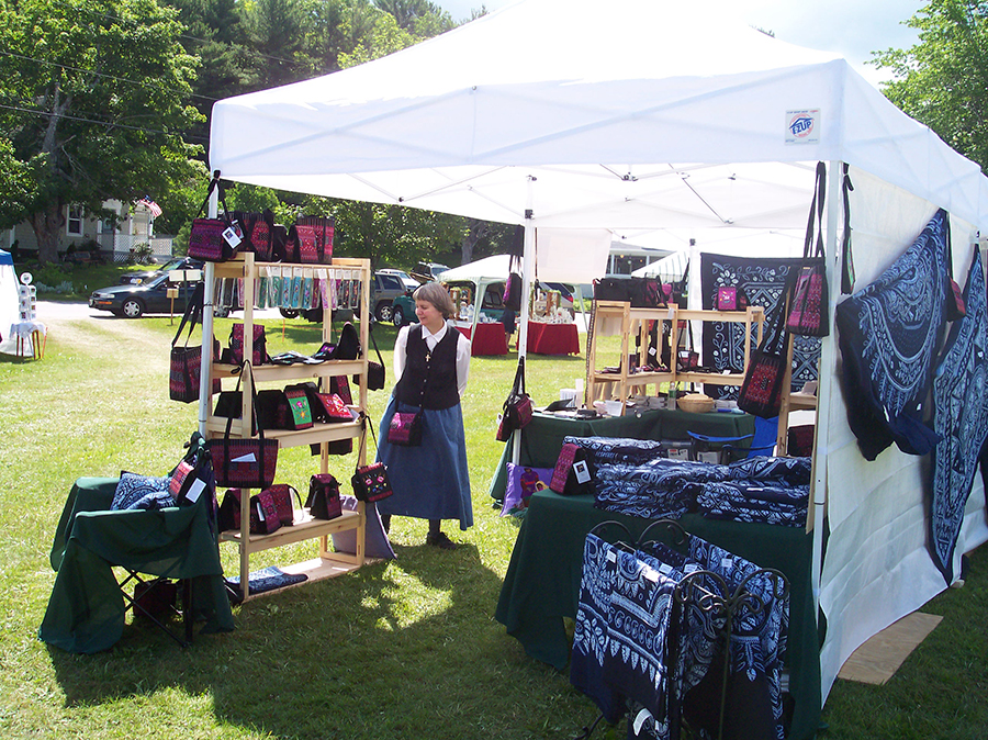 Dorothy Lacy vende bordados de Shenaini Miao en una feria en Estados Unidos en 2004.