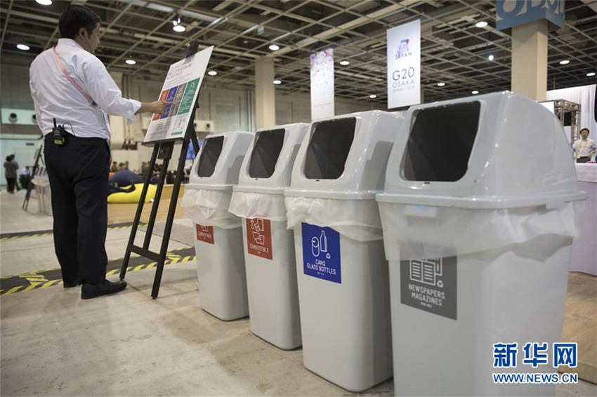 Trata de contenedores de basura clasificado (foto tomada el 29 de junio) en el Centro de Prensa de la Cumbre del G20 en Osaka, Japón.