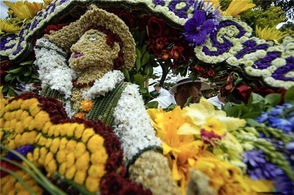 Hombres se preparan previo al Desfile de Silleteros, en el marco de la Feria de las Flores, en la ciudad de Medellín, Colombia, el 11 de agosto de 2019. De acuerdo con información de la prensa local, la Feria de las Flores de Medellín terminó el domingo con un desfile de silleteros en el que participaron alrededor de 550 silleteros. El festival de silleteros, que se lleva a cabo en el marco de la Feria de las Flores y que consta de campesinos cargando en sus espaldas paisajes, retratos, mensajes con valores autóctonos y cívicos realizados con flores sobre una silleta y que realizan un recorrido por las principales calles de la ciudad, fue incluido recientemente por el Ministerio de Cultura de Colombia en la Lista Representativa del Patrimonio Cultural Inmaterial de la Nación.