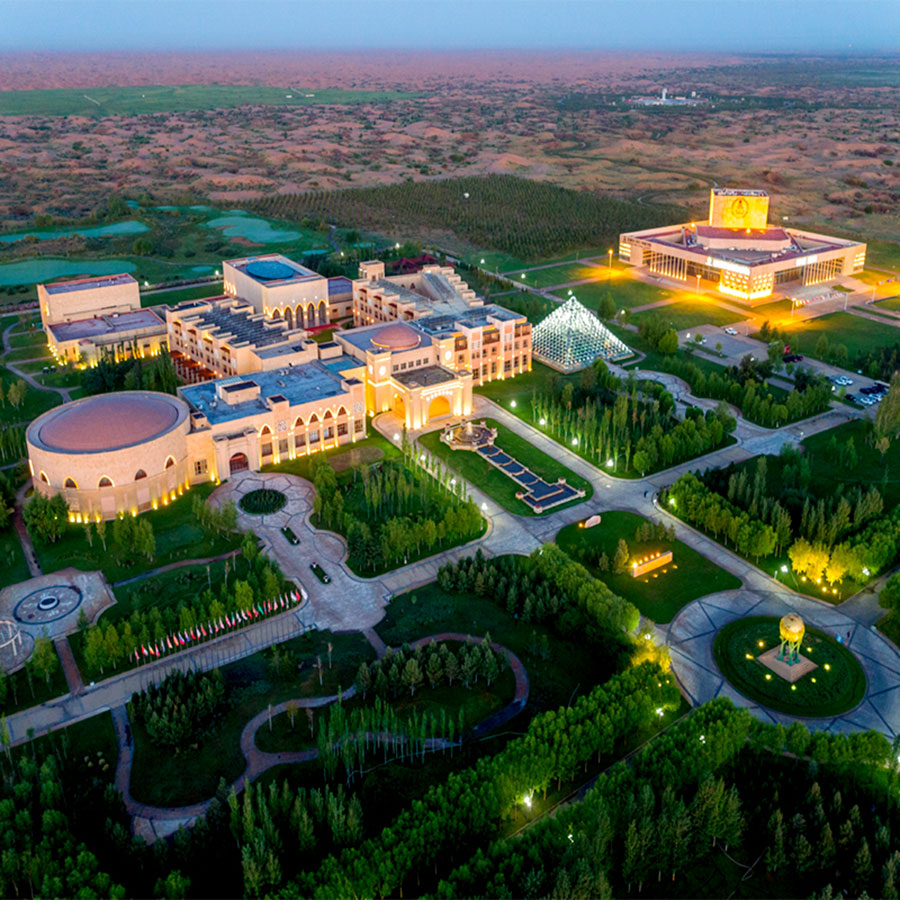 Un hotel palaciego en el Qixing Lake Resort agrega glamour al desierto de Kubuqi en la región autónoma de Mongolia Interior del norte de China.